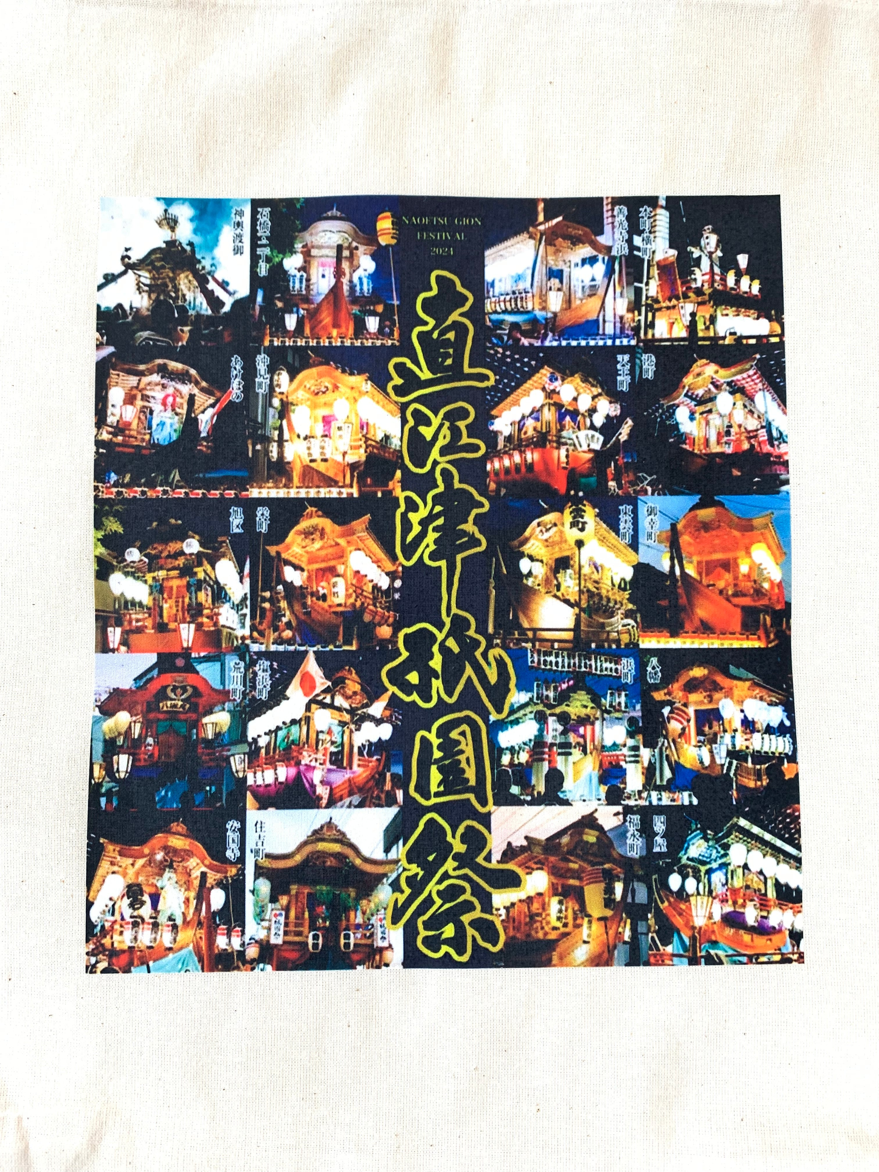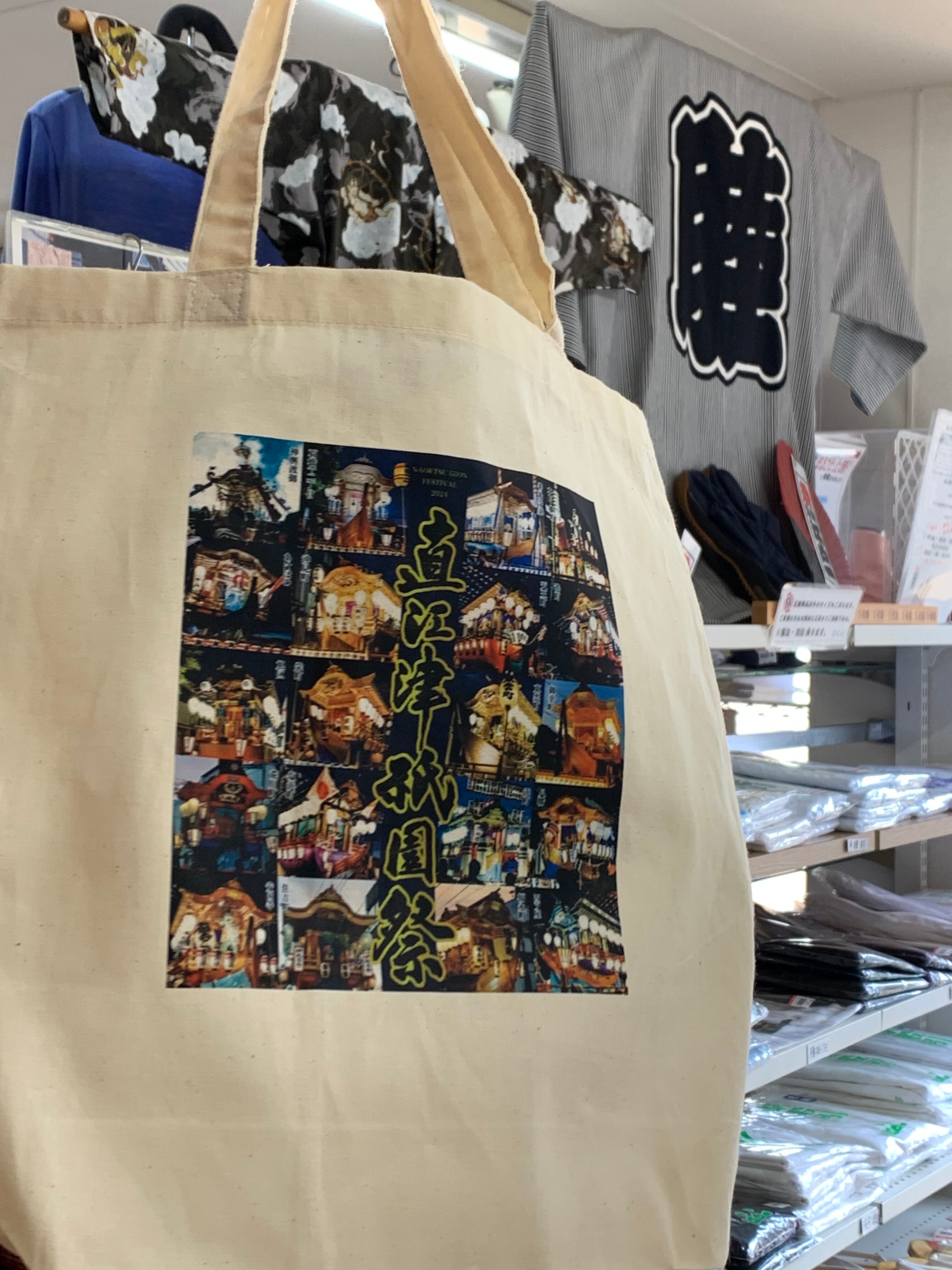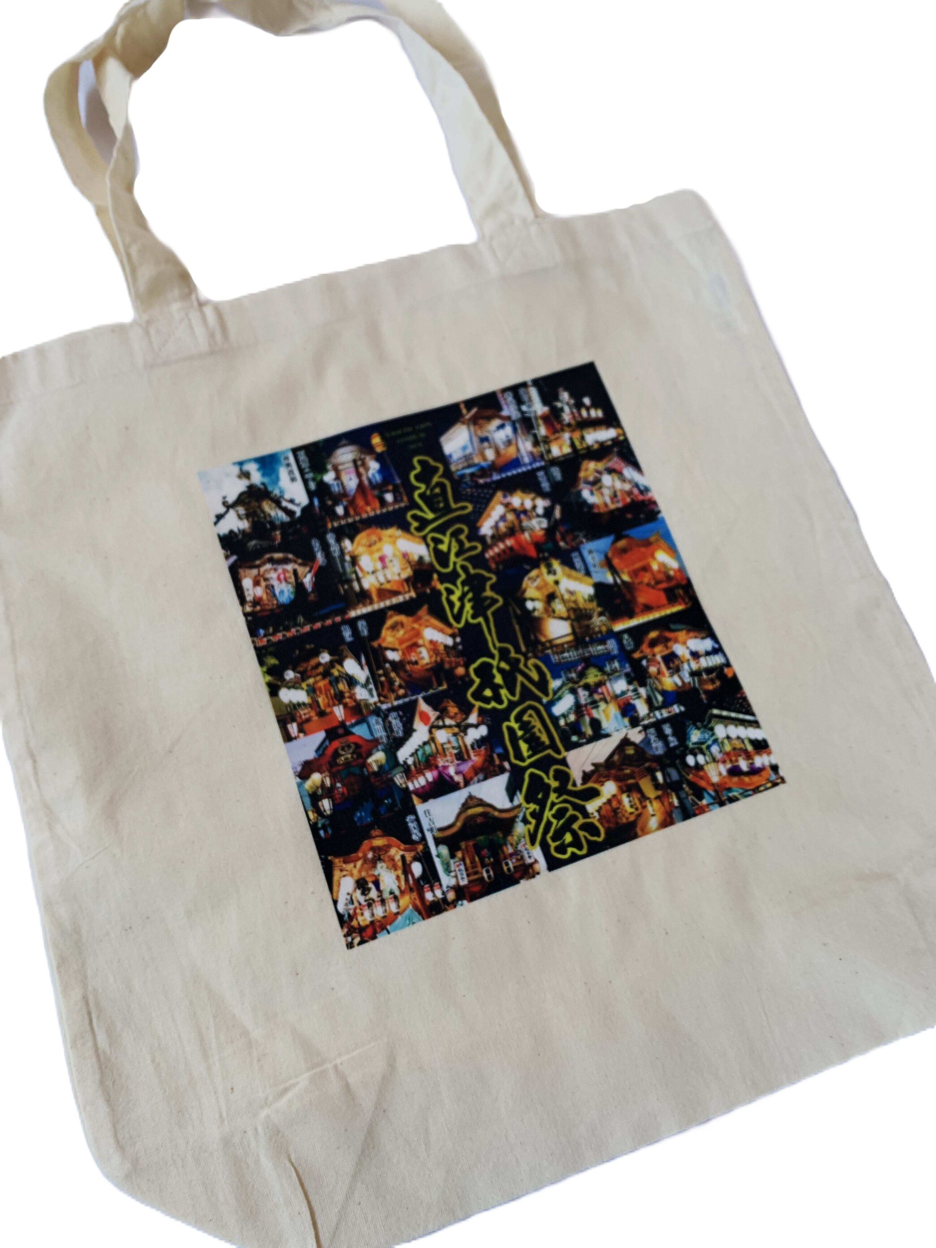 全19町内の山車(屋台)の写真がプリントされたトートバッグです。